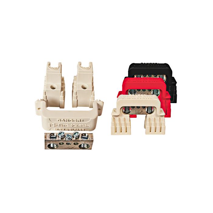 MidNite Solar 2/0 Busbar, 5 wire locations, 3 x #6 & 2 x 2/0 wire - red