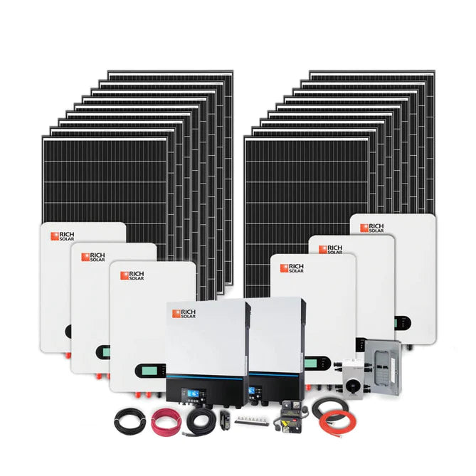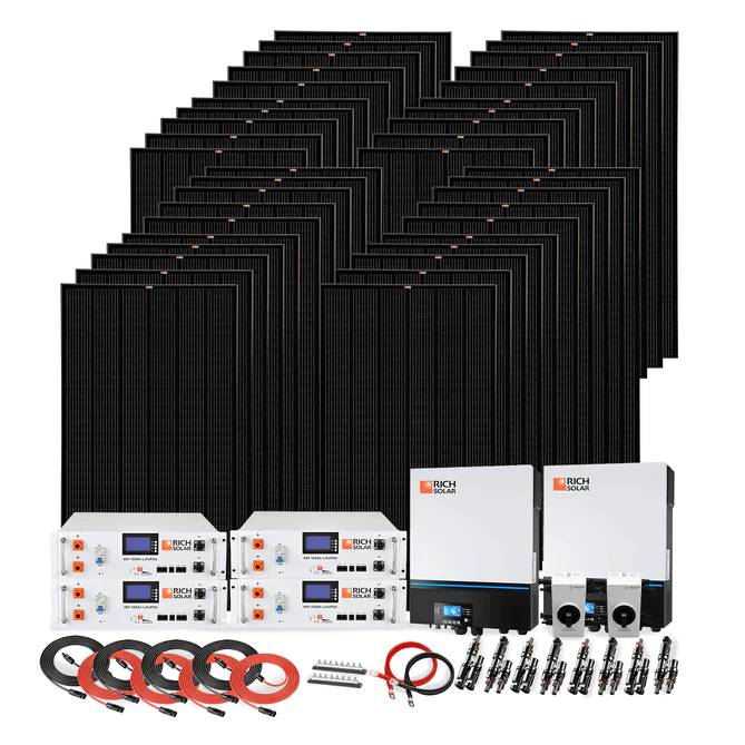 Rich Solar Complete Off-Grid Solar Kit | 13,000W 120/240V Output | 48VDC (19.2kWh Alpha 5 Server Lithium Iron Phosphate Battery) + 12,800 Watts of Solar PV