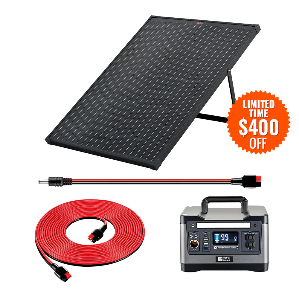 Rich Solar X500 Solar Generator Kit 540Wh Generator and 100 Watt Portable Solar Panel Black