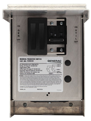 Generac 30A Indoor Transfer Switch Kit | 8-10 Circuits Stand-Alone Upgradeable