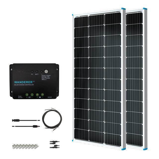 Renogy 100W 12V Monocrystalline Solar Starter Kit w/Wanderer 30A Charge Controller