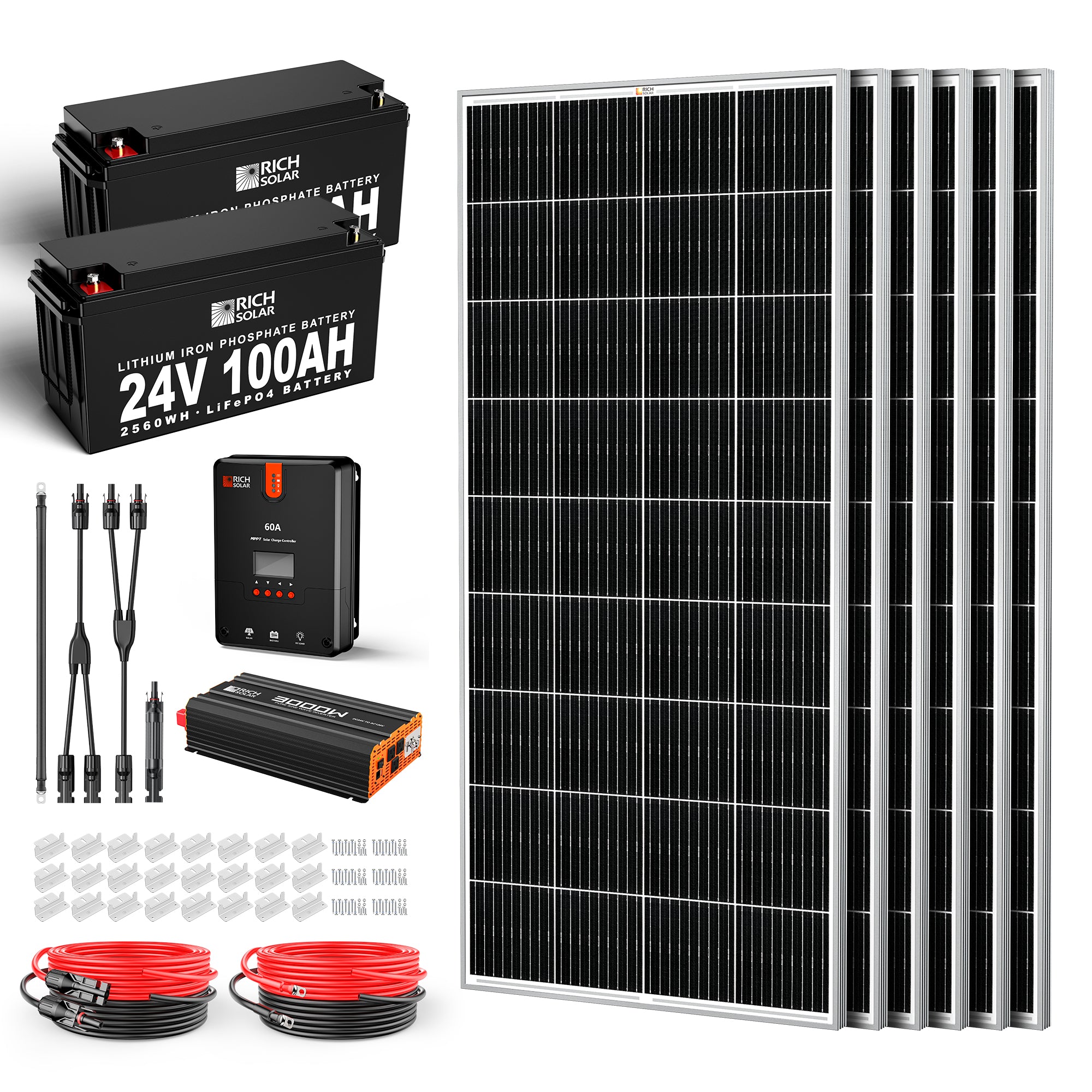 Rich Solar Off-Grid System Kit | 13,000W 120/240V Output, 48VDC(28.8kWh Alpha 5 Server Lithium Iron Phosphate Battery)