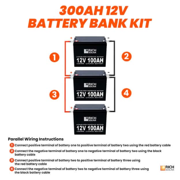 Rich Solar 12V - 300AH - 3.8kWh Lithium Battery Bank