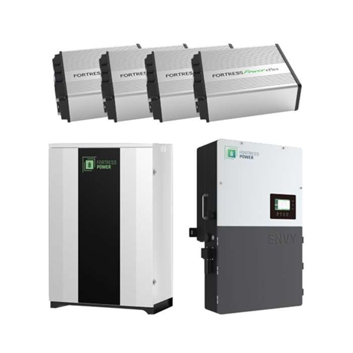 Fortress Envy 12kW Hybrid Inverter, 4 eFlex G2 5.4 kWh Lithium Batteries, Durarack Enclosure and Guardian Battery Monitoring Bundle