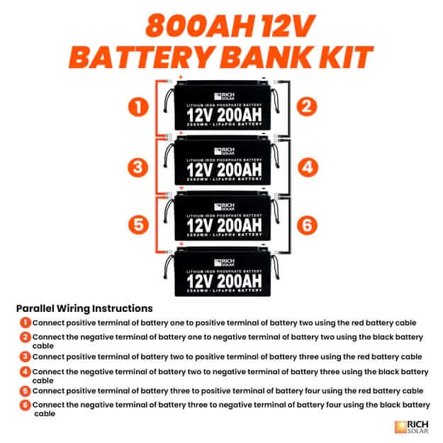 Looking for a high-capacity energy solution for your off-grid or renewable energy needs? The Rich Solar Lithium Battery Bank offers a 12V, 800Ah capacity with a total energy storage of 10.2kWh, ensuring reliable and efficient power for your applications.