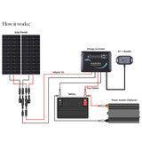 Overall, this solar panel system offers high efficiency, durability, expandability, protection features, and easy installation, making it suitable for outdoor applications such as RVs or campers.