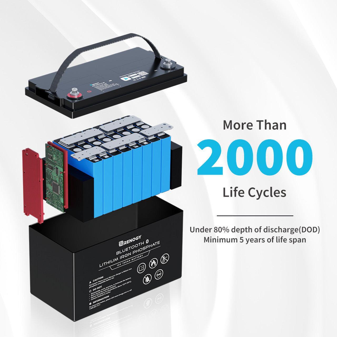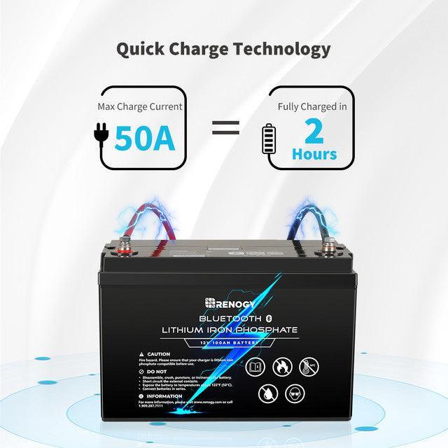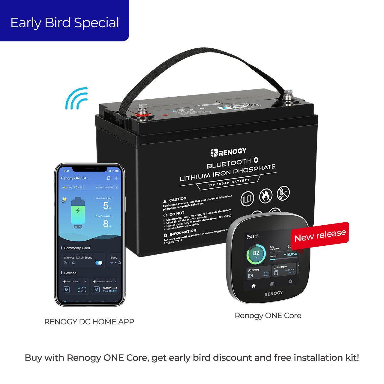 Renogy 12V 100Ah Lithium Iron Phosphate (LiFePO4) Battery with Bluetooth and Renogy ONE Core