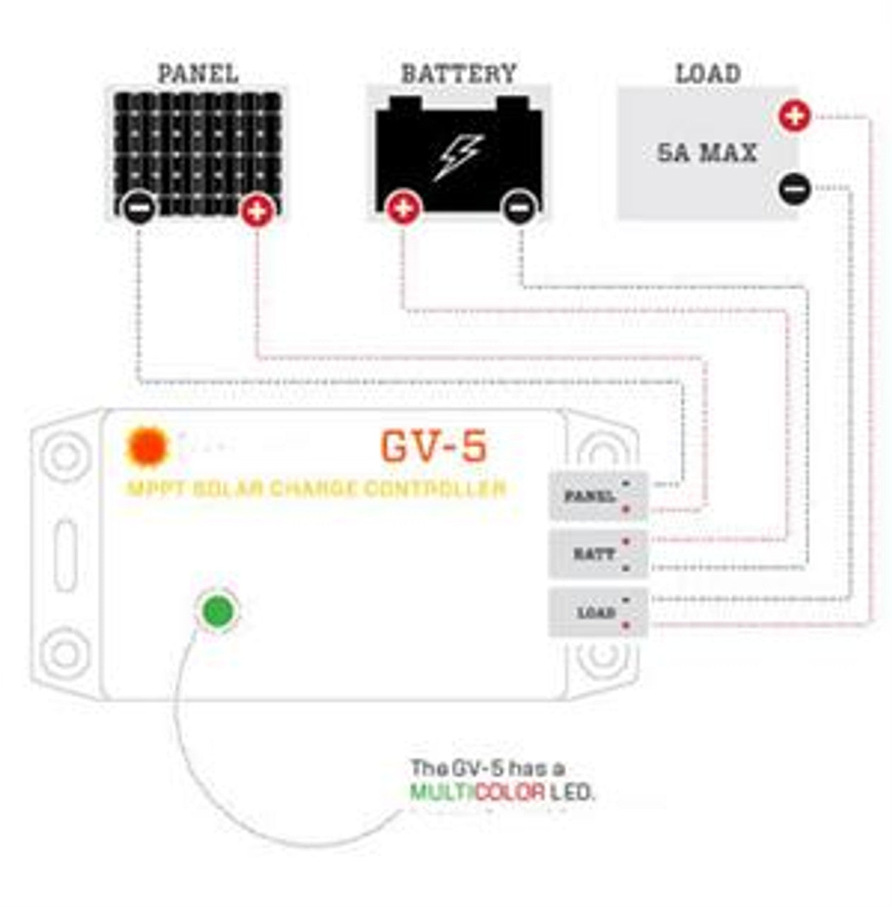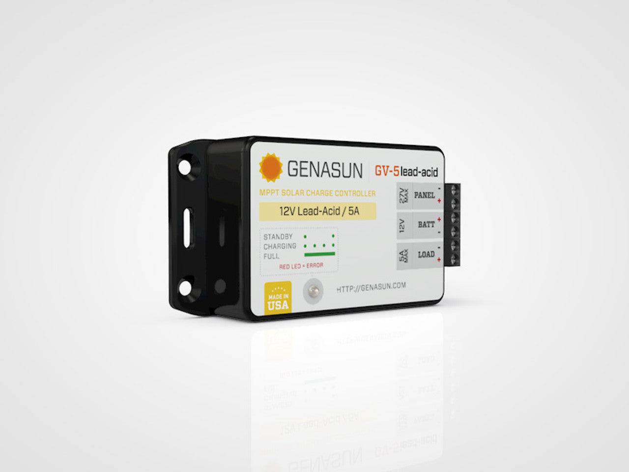 Sunforge 5 A, 12 V Lead-Acid with custom charge voltage, 65 W solar panel, 5 A LVD Load Output