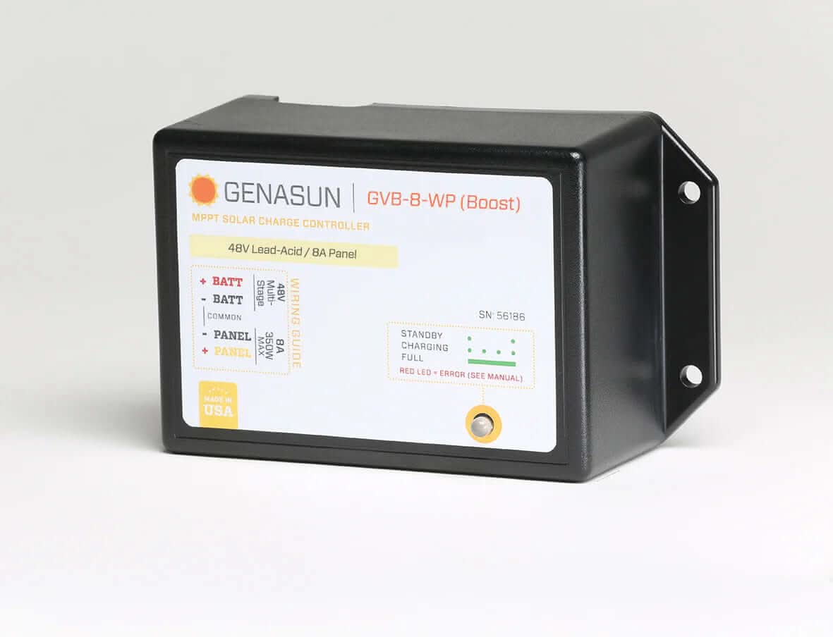 Empower your solar energy system with the Genasun GV-Boost-8 MPPT solar charge controller, tailored to step up the voltage of lower-voltage panels and efficiently charge 48V lead-acid batteries, whether you need a waterproof or potted version