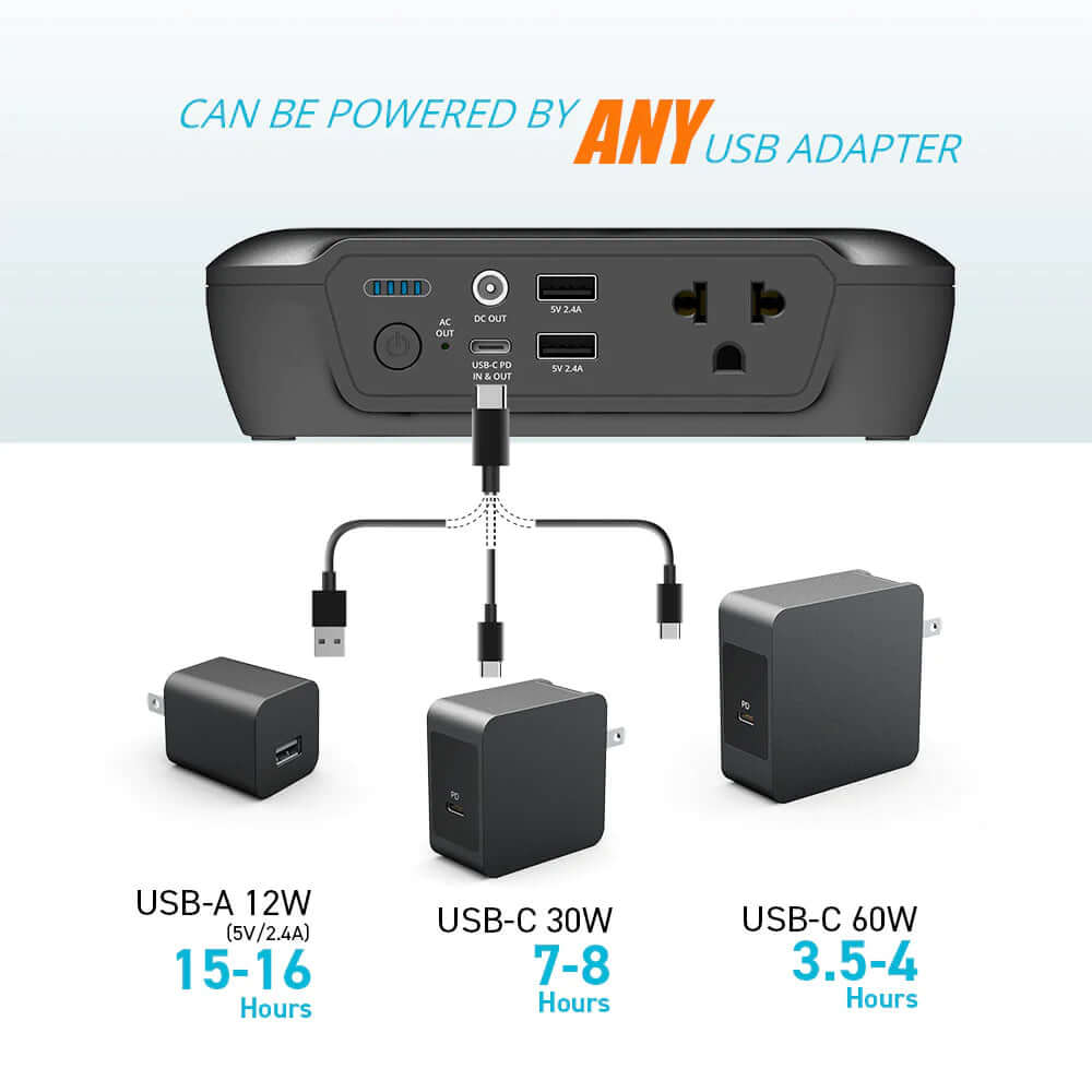 Powerful Solar Charging: The solar generator is compatible with solar panel input, enabling you to harness clean and renewable energy from the sun. This feature makes it an ideal choice for off-grid scenarios, such as camping or powering remote locations.