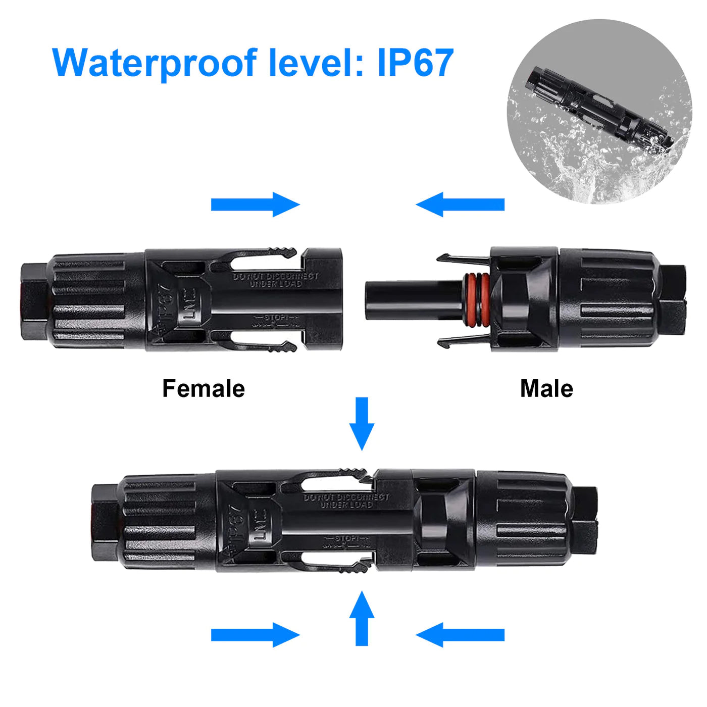 Cable Size and Wiring: When using these connectors, it's important to ensure that the wire gauge (size) of the cables attached to your solar panels matches the connectors properly. The use of appropriately sized wires and connectors is crucial for safety and optimal performance.