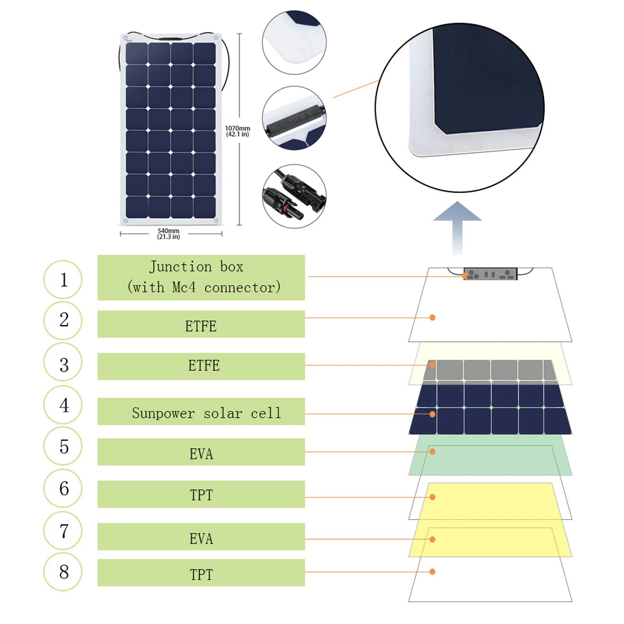 110W Semi-Flexible Solar Panel