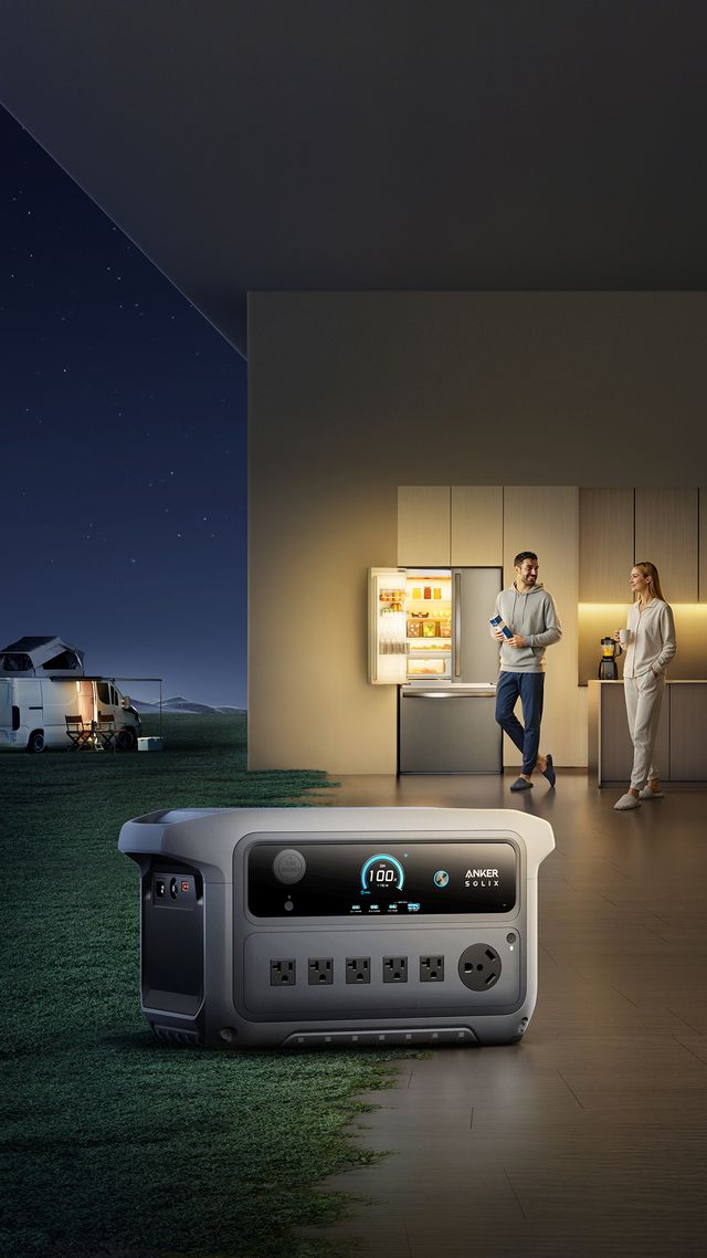 Meet the Anker SOLIX C2000 Gen 2, the world's most efficient 2kWh portable power station. It features ultra-low 9W idle power, 37.5% below industry average, saving energy for longer backup in outdoor or DIY setups. Recharge 100% in just 58 minutes for quick emergency outage, and it can even expand to 4kWh to run a fridge for up to 64 hours. With 4000W peak power, it supports heavy loads like air conditioners, sump pumps, etc. The station includes 10 versatile ports to power devices simultaneously—perfect for camping, family trips, or short outage .