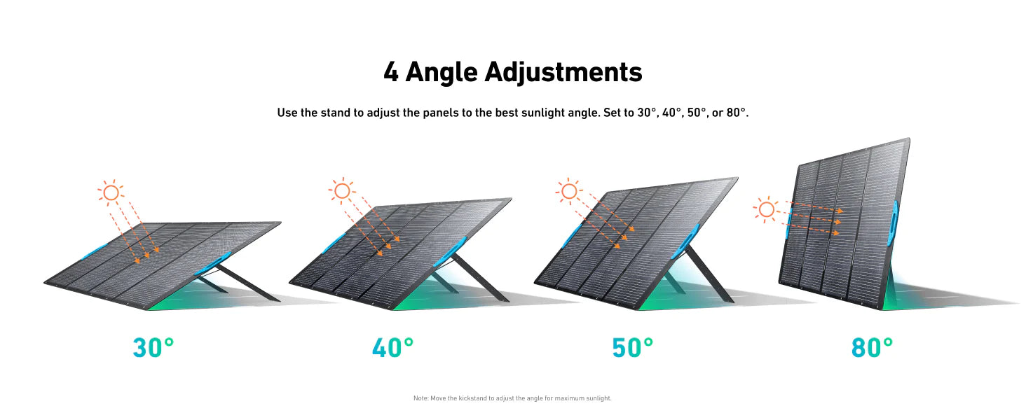 3-Mode Angle Adjustments: Seamlessly adjust SOLIX PS400 Solar Panel to 40°, 50°, or 60° via the adjustable kickstand for optimal solar power.