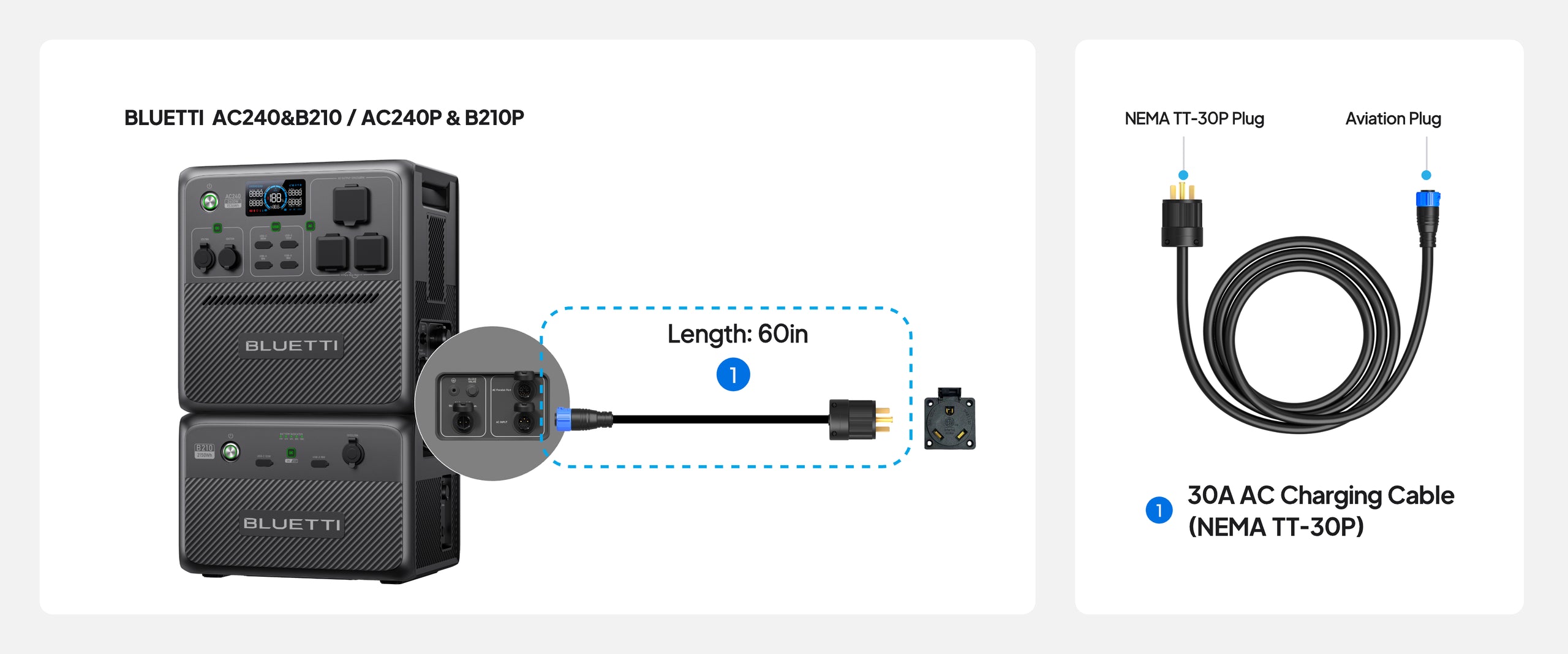 Bluetti 30A Fast Charging Cable (NEMA TT-30)