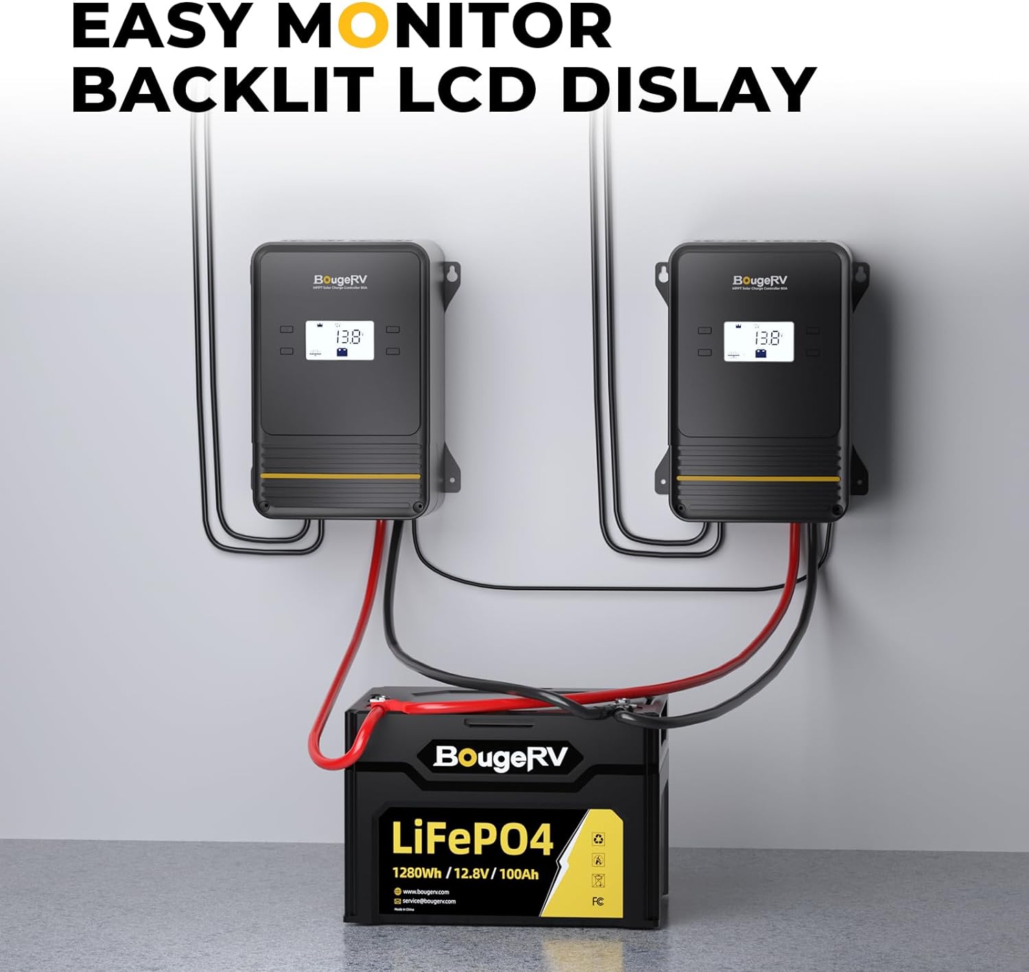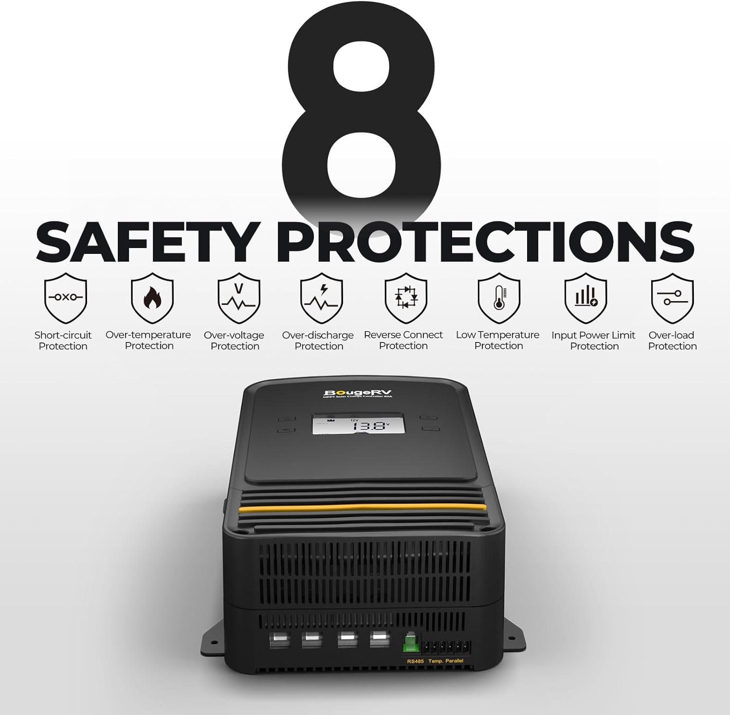 Get the most out of your solar panels with the BougeRV 100A MPPT solar charge controller. This advanced controller features MPPT technology to ensure peak power generation, even in changing weather conditions. Works with 12V, 24V, 36V, and 48V battery systems, supporting various battery chemistries like LiFePO4, AGM, Gel, and more. Maximize your solar energy harvest and ensure a safe, reliable charging experience with the BougeRV 100A MPPT solar charge controller.