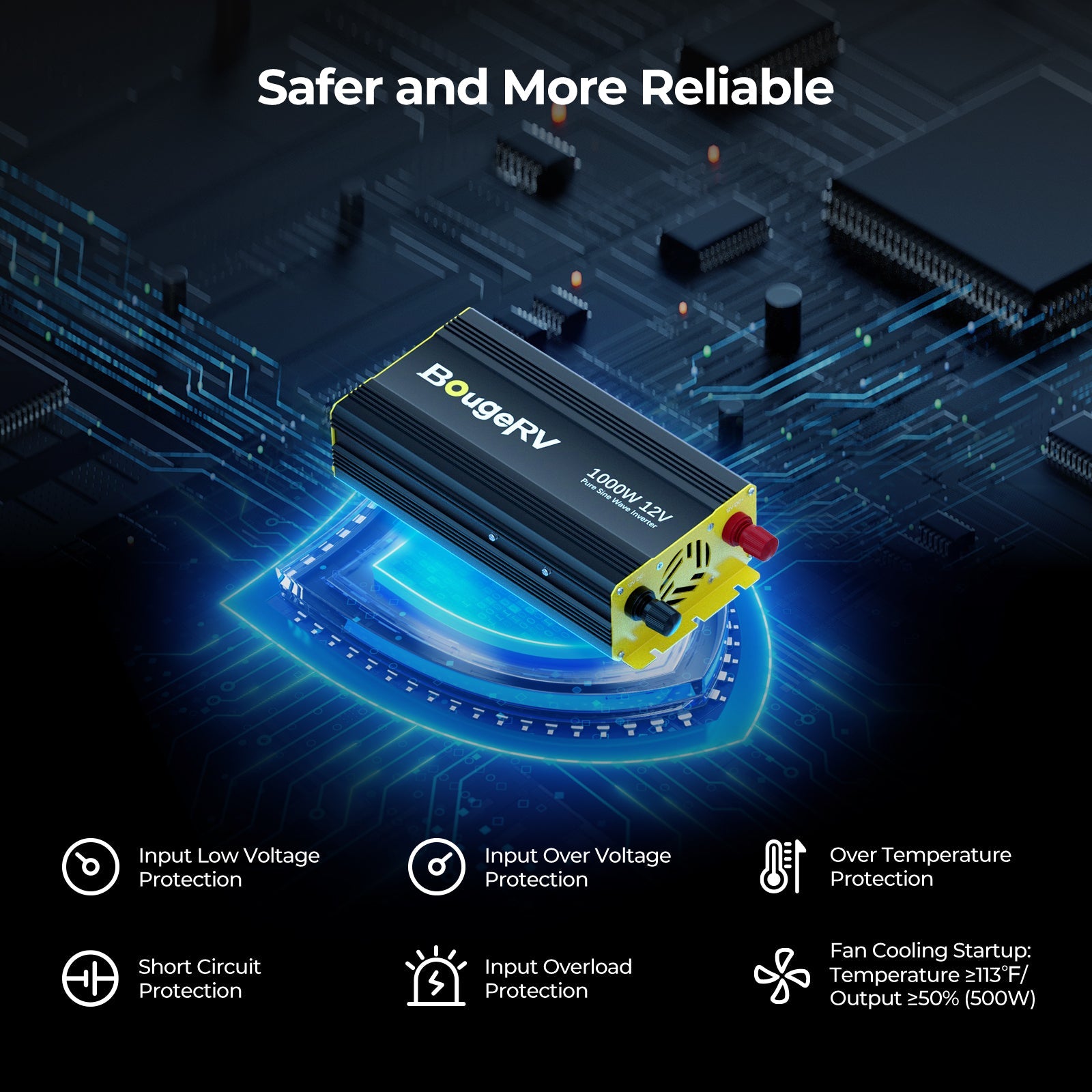 - 1PC 1000W 12V Pure Sine Wave Inverter