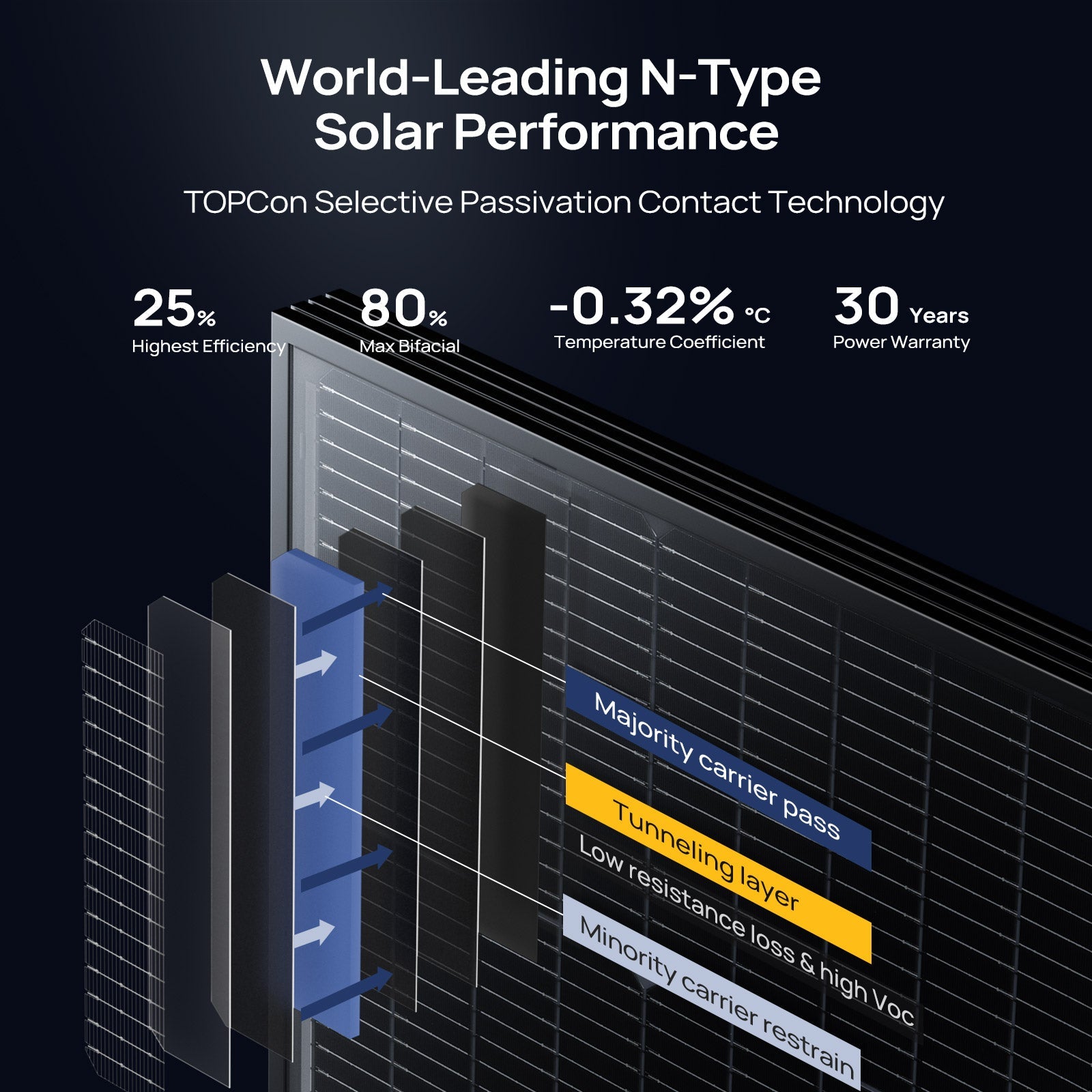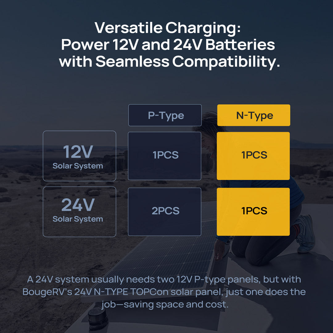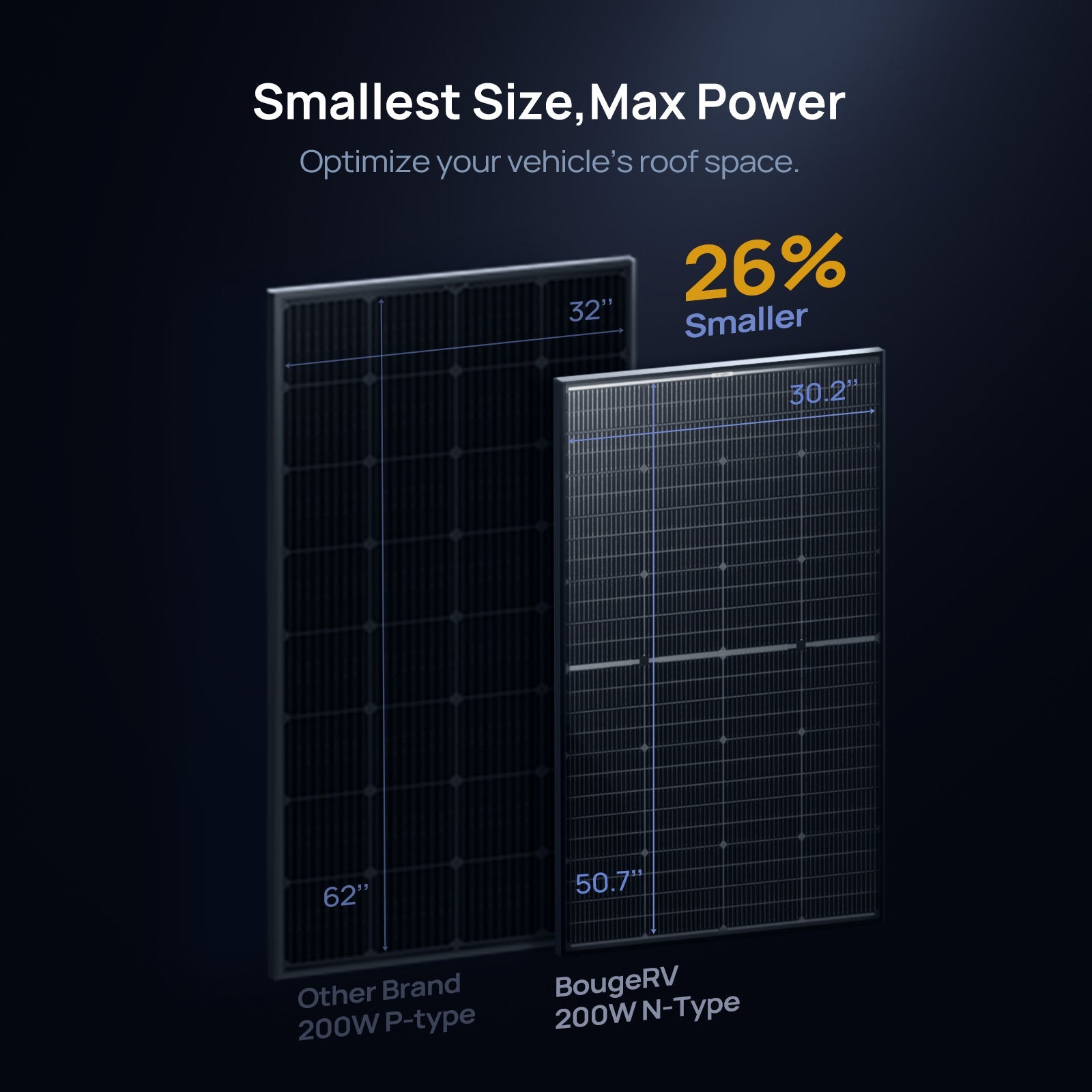 - 1PC BougeRV 16BB N-Type 200 Watt Bifacial Solar Panel