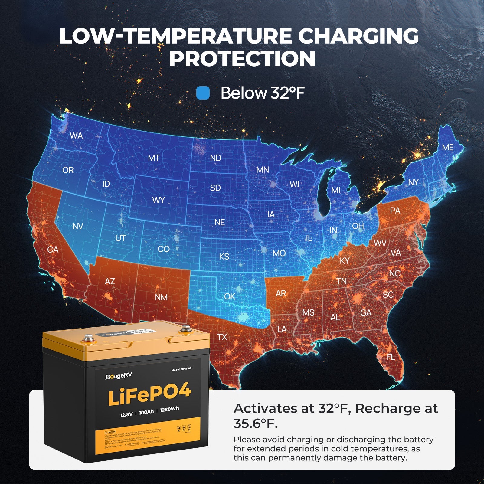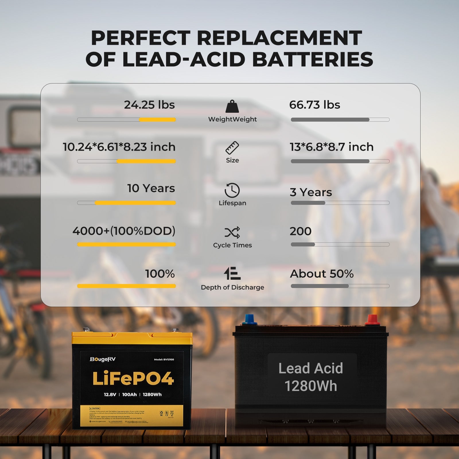 - 1PC 12V 100Ah Group 24 LiFePO4 Battery