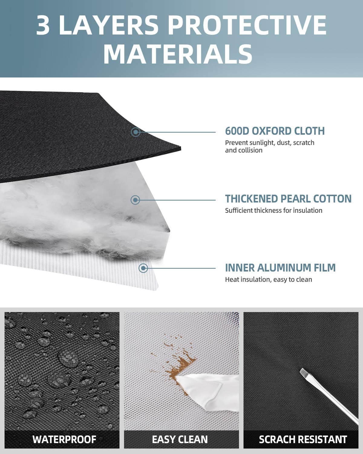 Unwavering Durability: Constructed with unwavering durability in mind, the protective cover is composed of weather-resistant materials that defy the elements. Reinforced stitching and robust zippers contribute to its overall resilience, ensuring years of dependable service.