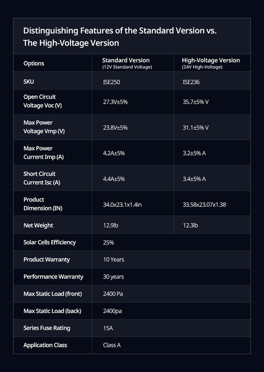 Discover cutting-edge solar technology with BougeRV 100-watt solar panel, available in both 12V and 24V configurations. Engineered with premium N-Type TOPCon cells, it guarantees superior efficiency and durability. For 12V systems like RVs, camper vans, trucks, and tiny houses, our 12V 100W TOPCon solar panel is the ideal choice. For 24V systems, the 24V 100W solar panel offers optimal performance. Embrace solar energy excellence with BougeRV.