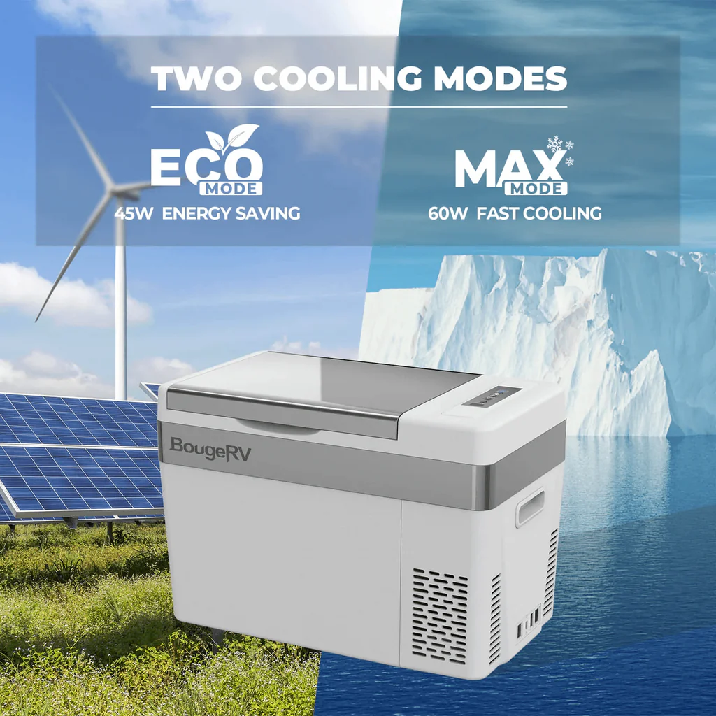 In the ECO mode, the working power of BougeRV Portable Refrigerator is less than 45W. In the MAX mode, the power consumption of its smart cycle work is far less than 1kWh per day.