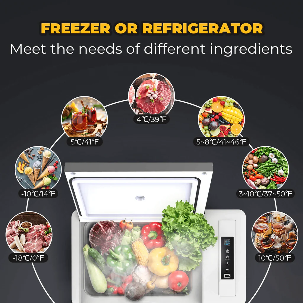 With the compressor refrigeration technology, BougeRV 30 Quart Portable Refrigerator can achieve 16 minutes of rapid cooling to keep food fresh.