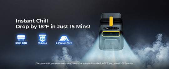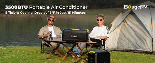 🌬️ Stay Cool, Anywhere, Anytime! ❄️BougeRV Portable Tent Air Conditioner delivers 3500 BTU of powerful cooling, dropping temperatures by 18℉ in just 10 minutes. With 5 smart modes and whisper-quiet operation, it keeps you cool without the noise. Compact, powerful, and easy to carry, this portable air conditioner keeps your tent, RV, or camper perfectly chilled—even in the hottest weather!❄️