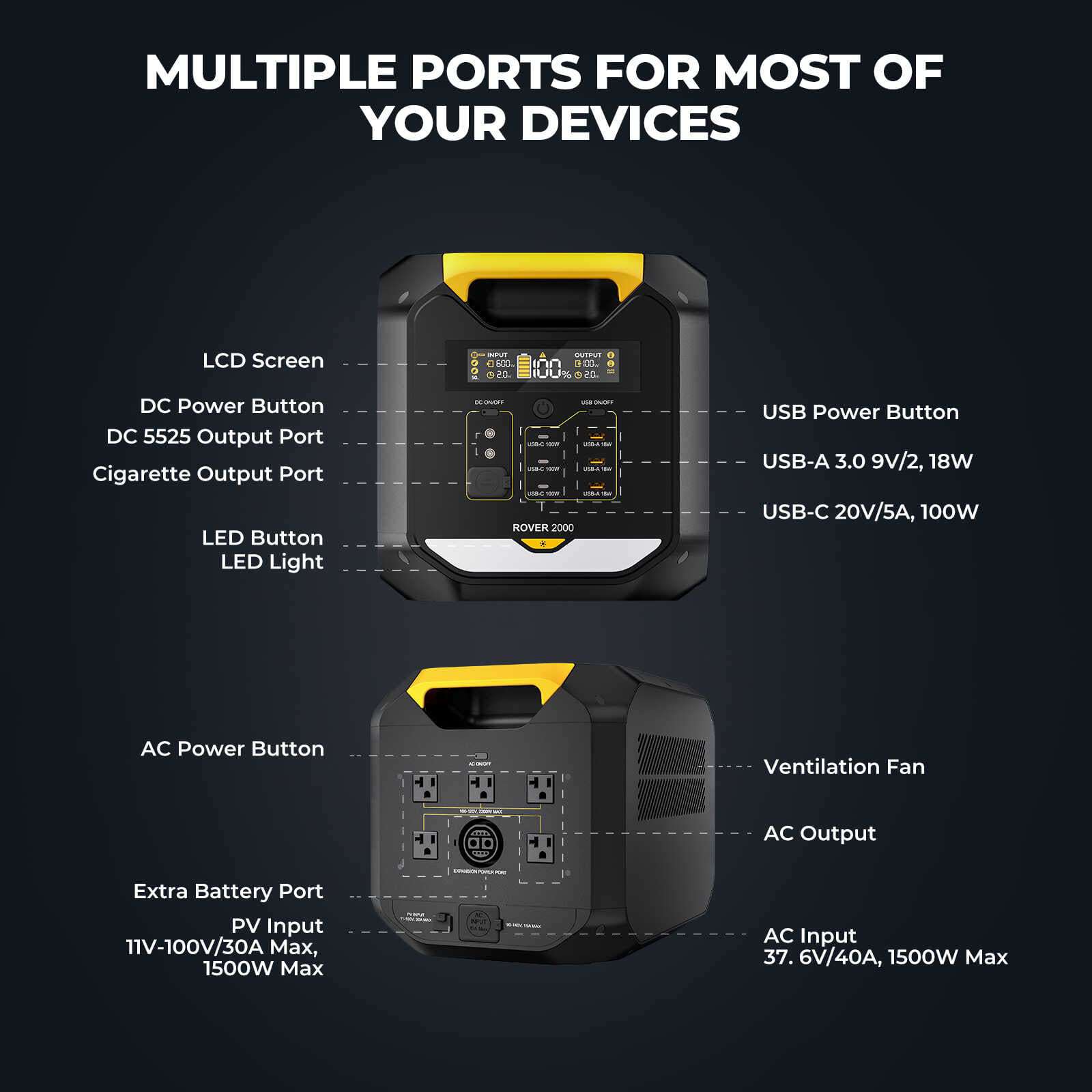 The ROVER2000 portable power station stands out for its advanced semi-solid state battery technology, providing unmatched performance and durability. This innovative battery is highly stable, guaranteeing a longer lifespan and improved safety. It is the ultimate solution for all your on-the-go power requirements. Whether you enjoy outdoor activities, frequently travel, or desire a dependable backup power source, this power station is the ideal option.