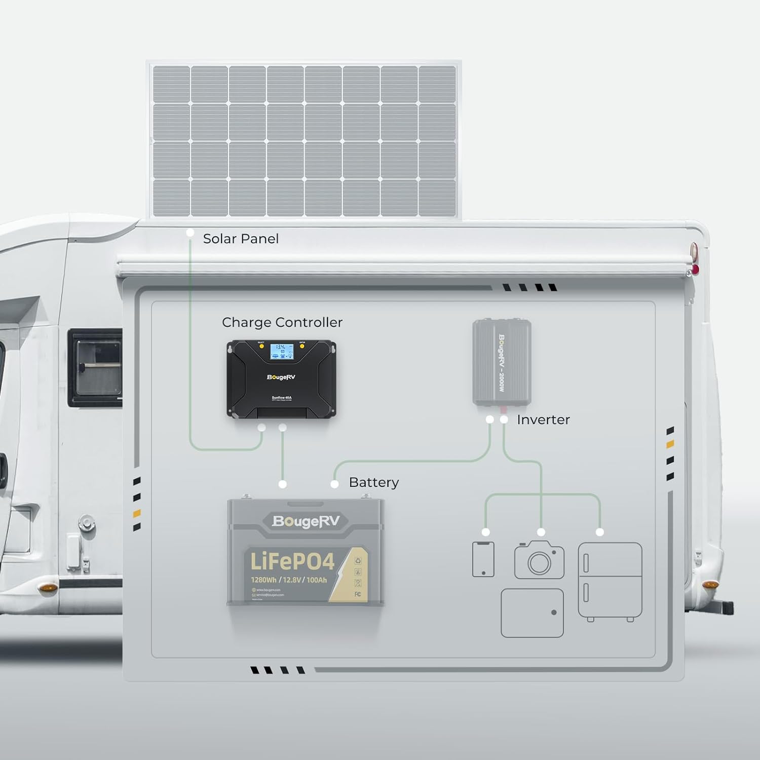 With our BougeRV Sunflow 40A MPPT solar charge controller, you can make sure your solar panels are working at their best with its advanced MPPT technology. Plus, it has cool features that protect your lithium batteries. Upgrade your solar system to this awesome charge controller and make the most out of your solar panels for clean and renewable energy.