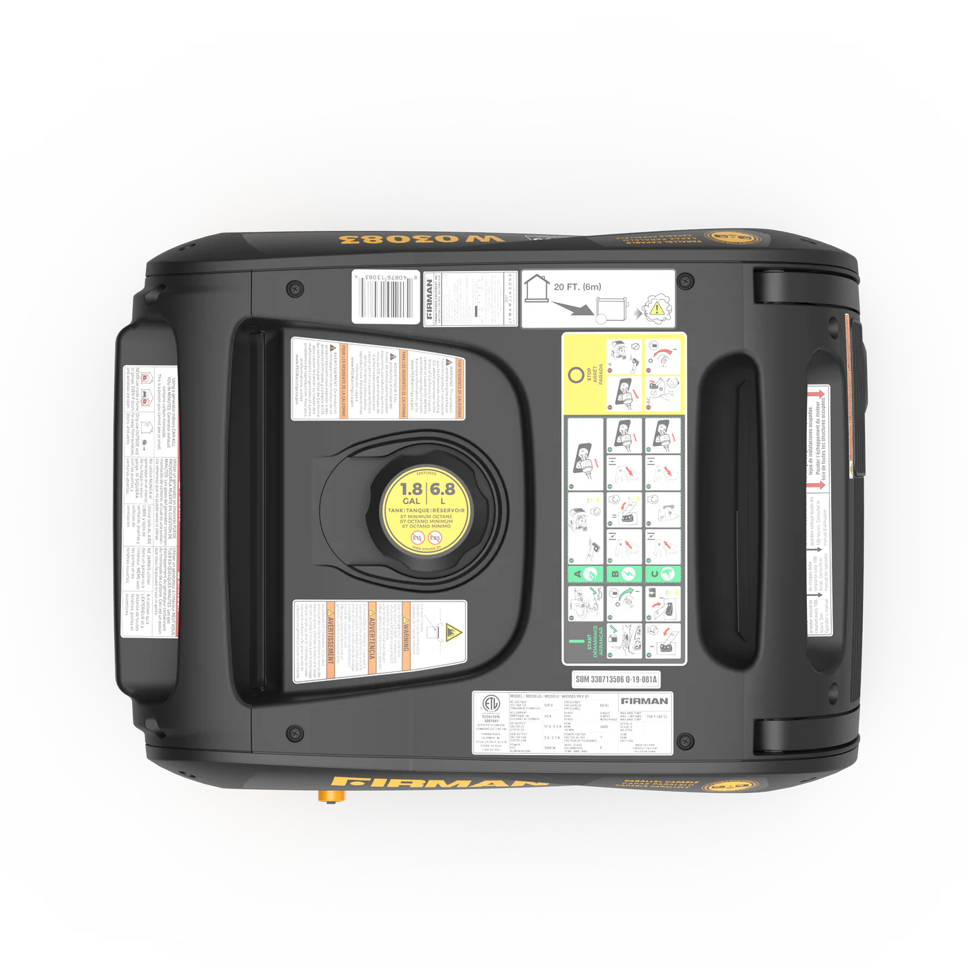 The 1.8-gallon fuel capacity provides up to a whopping 9 hours of run time, with a simple FIRMAN First pull — a reliable recoil system.