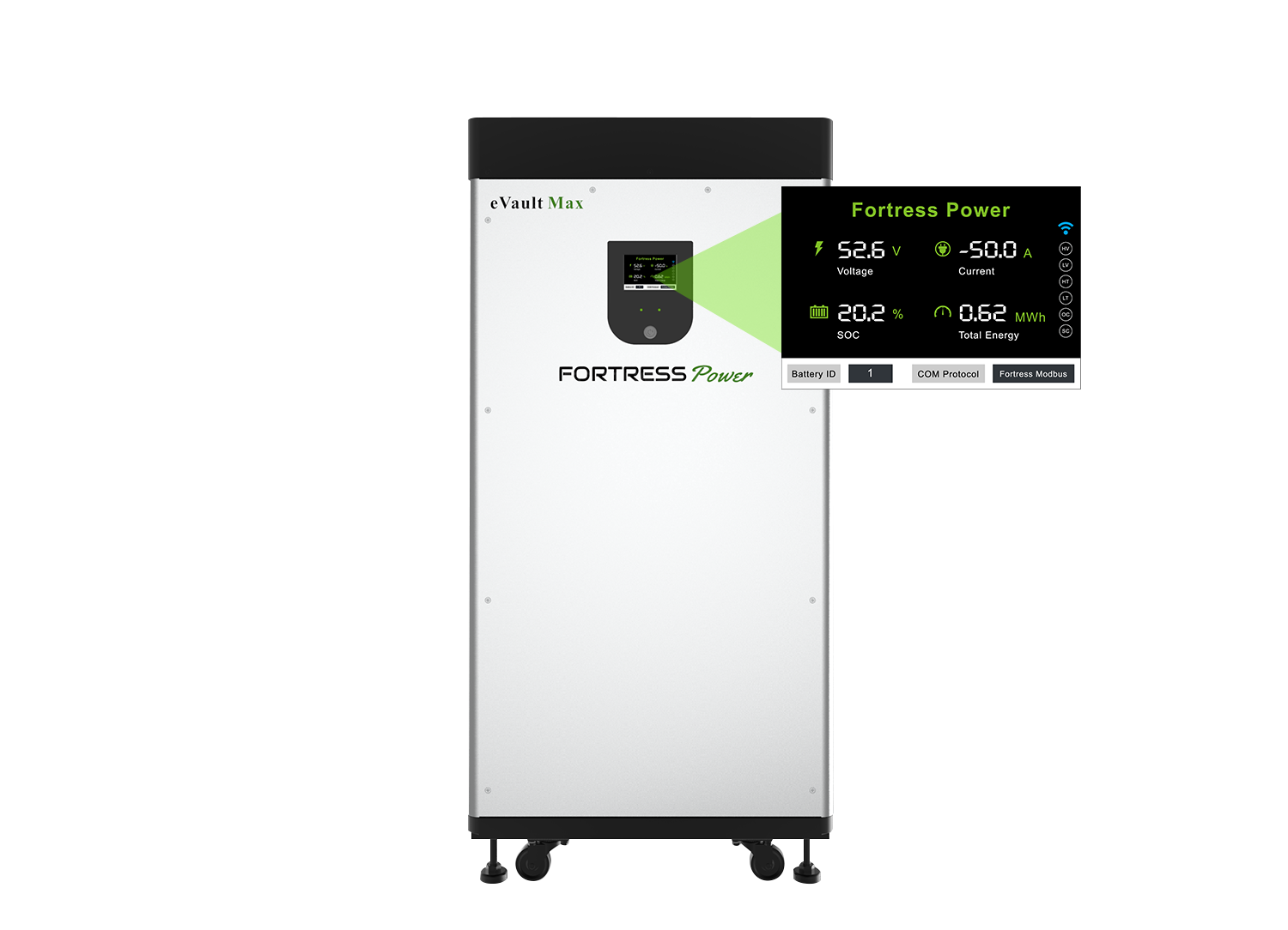Not only is the new fortress eVault 18.5 kWh battery safe, long-lasting and affordable, but is also equipped with a brand new LCD screen that displays voltage, current, state of charge, and power output and operating status. The built-in smart battery management system integrates multilevel safety concepts for excellent performance.