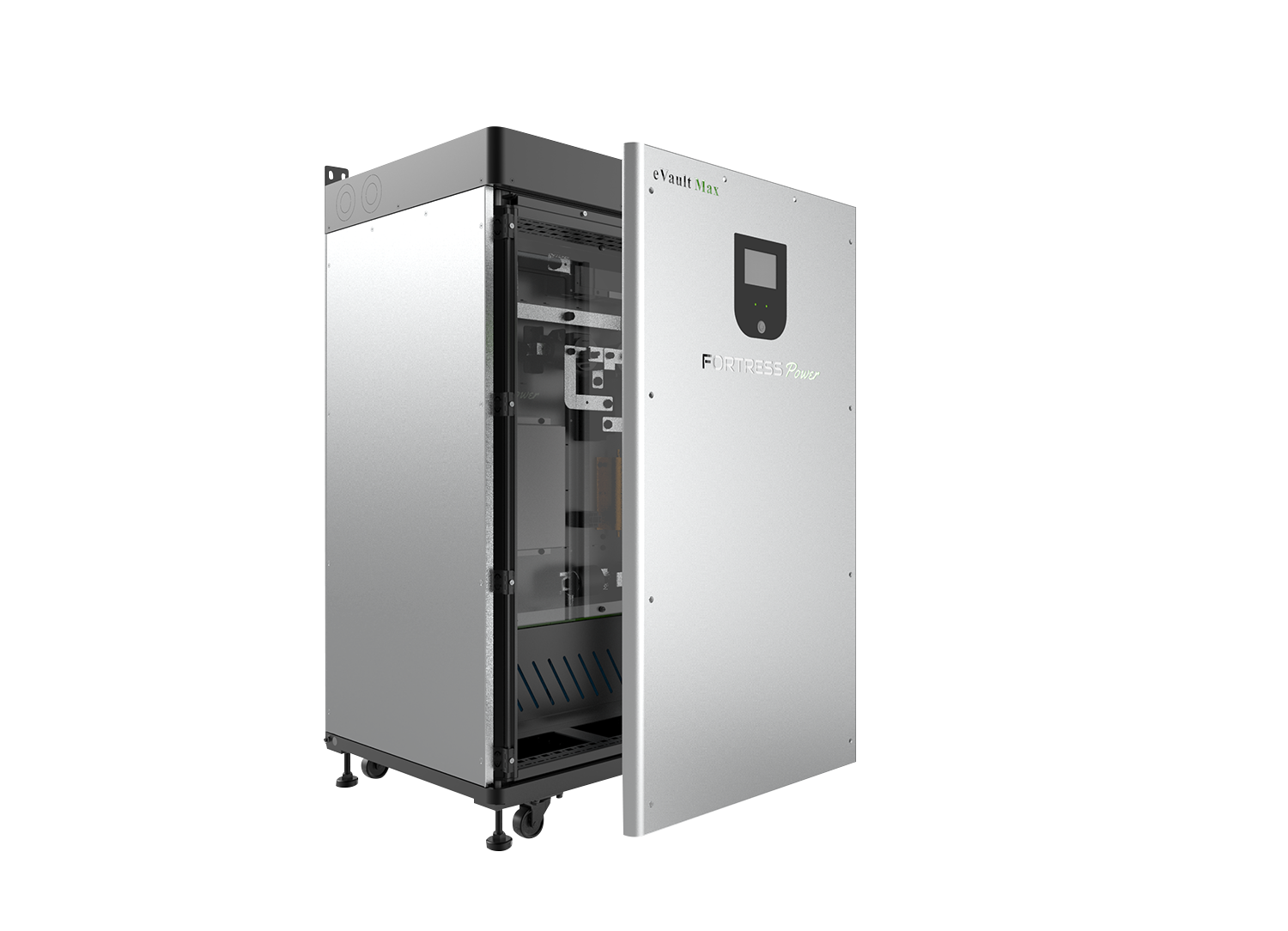 The newest innovative Lithium Iron Phosphate battery from Fortress Power is the eVault 18.5 kWh. An all-in-one solution for your residential and commercial needs. Scalable up to 370kWh with a serviceable top cover access to make installation of this battery simple and worry free. The eVault Max is AC/DC coupled to solar arrays and works for many applications that require solar storage, including Off-Grid, Back Up power, self-supply and Peak Charge Reduction just to name a few.