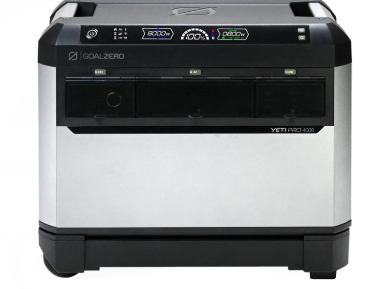 The Yeti PRO 4000 offers over 3 times the charging speed of previous generation products. It has 1800 W AC power in to charge from 0% to 80% in 2 hours and 3,000 W solar input to charge from 0% to 100% in under 2 hours while you're off grid.