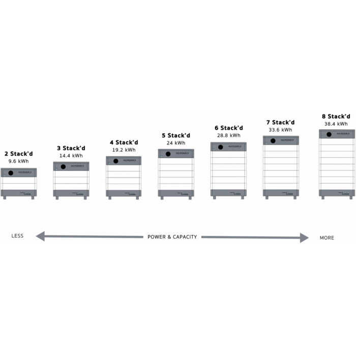 This home battery is modular with 4.8 kWh increments, providing a capacity range of 9.6-38.4 kWh per Stack. This also allows for easy servicing and future expansion. With continuous output at up to 15 kW, and a surge of up to 24 kW for 10 seconds, true full-home backup is here.