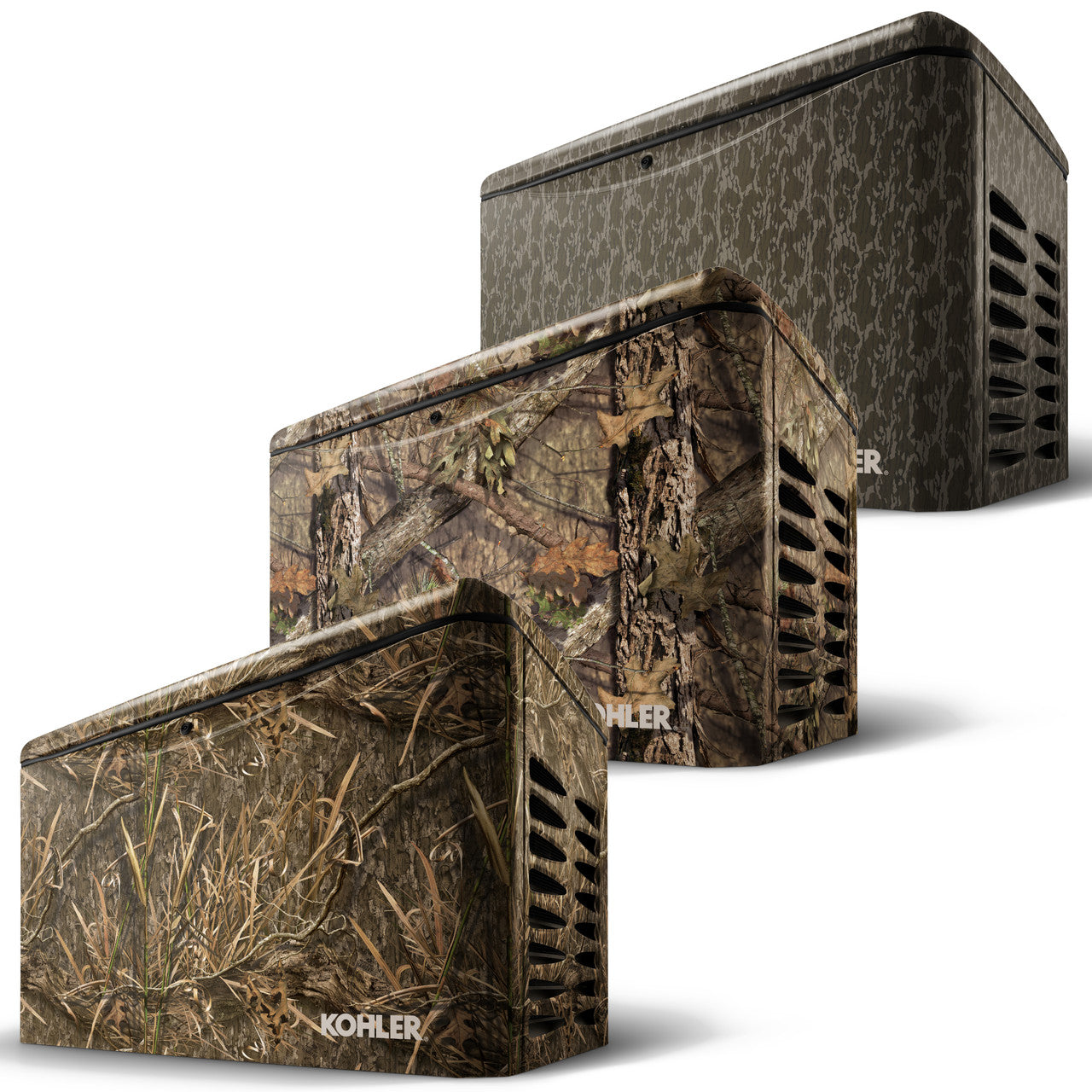 Take your generator to the next level with Mossy Oak® camouflage patterns – only from Kohler. Three popular camouflage patterns that allow your generator to Blend In with the surrounding landscaping or to Stand Out to show your appreciation for your favorite Mossy Oak camouflage pattern. Choose from Original Bottomlands, Break-Up Country, or Shadow Grass Habitat.