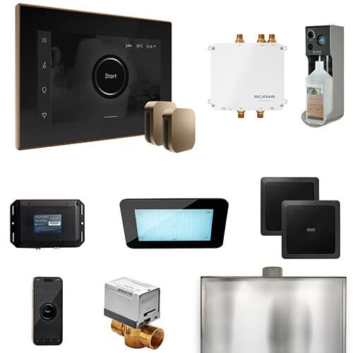 Welcome the ultimate shower experience with the Mr.Steam Bliss Max Control Package, a curated collection of the finest steam and shower systems. This collection comes complete with an iSteamX Control, 2 Aroma SteamHeads, AudioX System, ChromaSteamX System, AromaSteam System, Liter of Eucalyptus Oil, SpaNet Hub, AutoFlush System, Condensation Pan, and now completely blissful with the addition of the SpaH2O Electronic Shower Valve.
