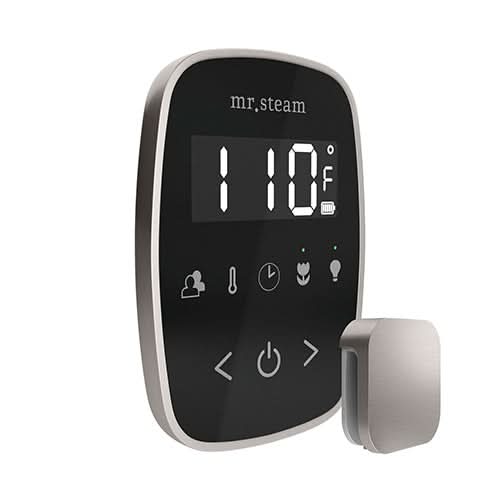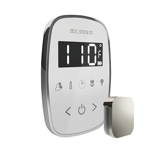 The Mr.Steam TempoFlex Control comes with an Aroma SteamHead. This is the only steam shower control that offers RF wireless connectivity with no cable needed to the steam generator, providing you desired flexibility and easy access to steam.