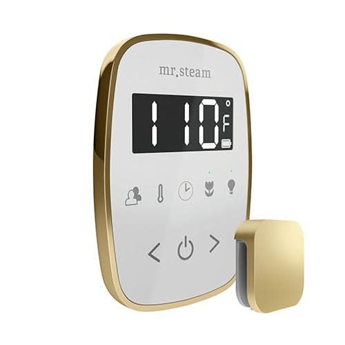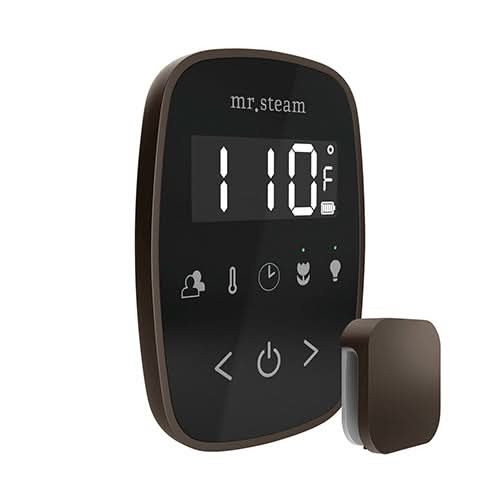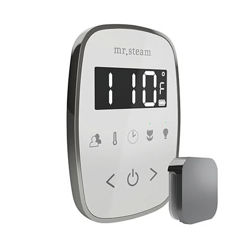 - Control can be installed wired for constant power or charged outside the steam room by plugging the control into a wall adapter