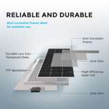 The Renogy ONE M1 is built with solid quality in mind. It features advanced encapsulation material with multi-layered sheet laminations, providing protection against physical damage or distortion. This design improves cell performance and extends the system's service life. The corrosion-resistant aluminum frame makes it ideal for outdoor use, while the TPT back sheet dissipates excess heat, ensuring smooth and reliable output performance. Additionally, the kit has undergone EL testing and comes with a 5-year warranty on materials and workmanship.