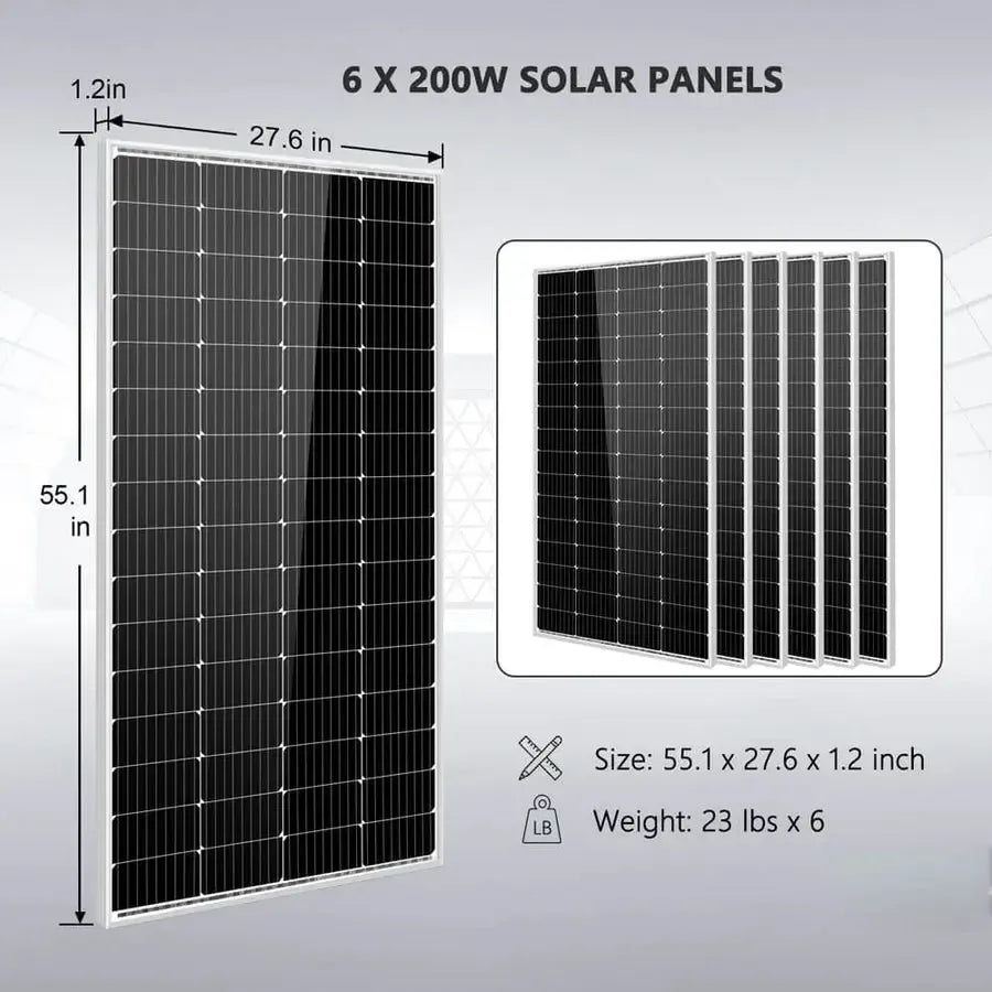 - 6 X 200 Watt Monocrystalline Solar Panels