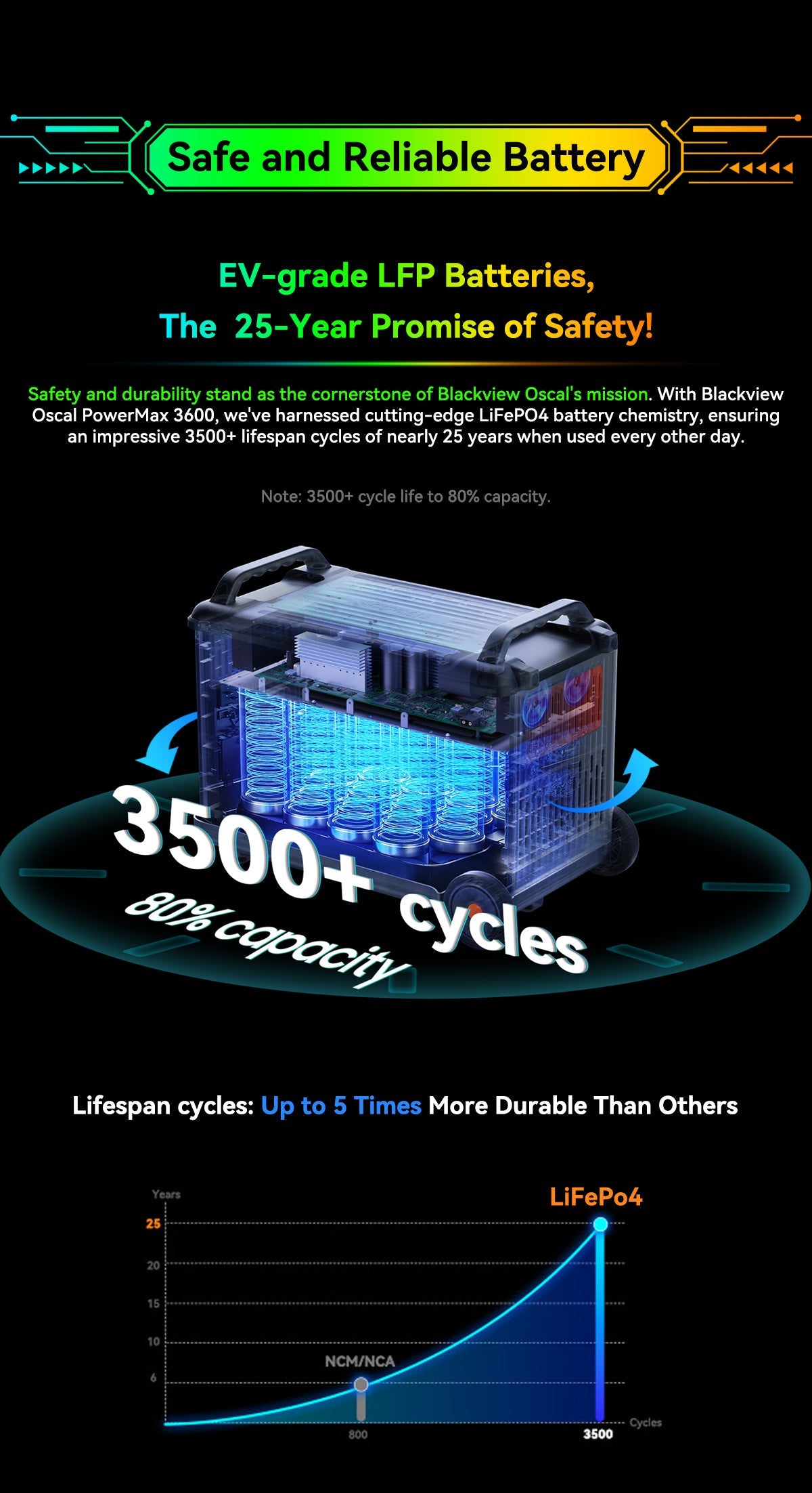 | Battery Life Cycles | 3500+ Cycles to 80% | |