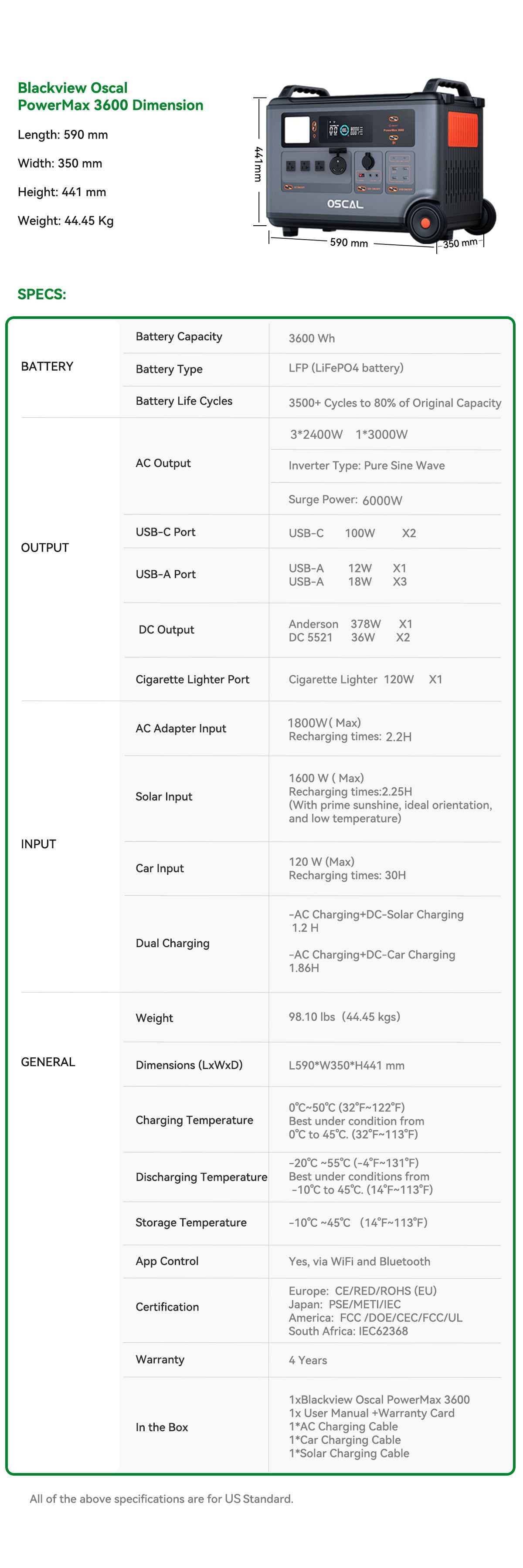 | Package Contents | Oscal PowerMax 3600 x 1 | |