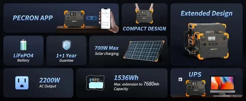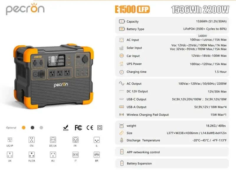 PECRON E1500LFP Expandable Power Station 2200W 1536Wh