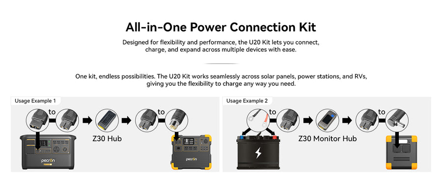 PECRON U20 Universal Cable Kit with 17 Different Adapter Cables for Power Station, Solar Panel