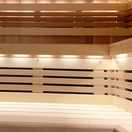 While PROSAUNAS offers a broad variety of wood species that are equally excellent choices for saunas and provide wide design versatility, Western Red Cedar is the traditional choice in North America. PROSAUNAS selects only premium-quality Cedar with smooth, even, straight grain and a consistent light, reddish-brown color. In addition to its natural beauty, Cedar possesses excellent thermal characteristics, making it comfortable to the touch even in the high heat of a sauna. Western Red Cedar naturally resists decay, insects, and is long-lasting. It also has organic compounds that help repel water and prevent insect damage.