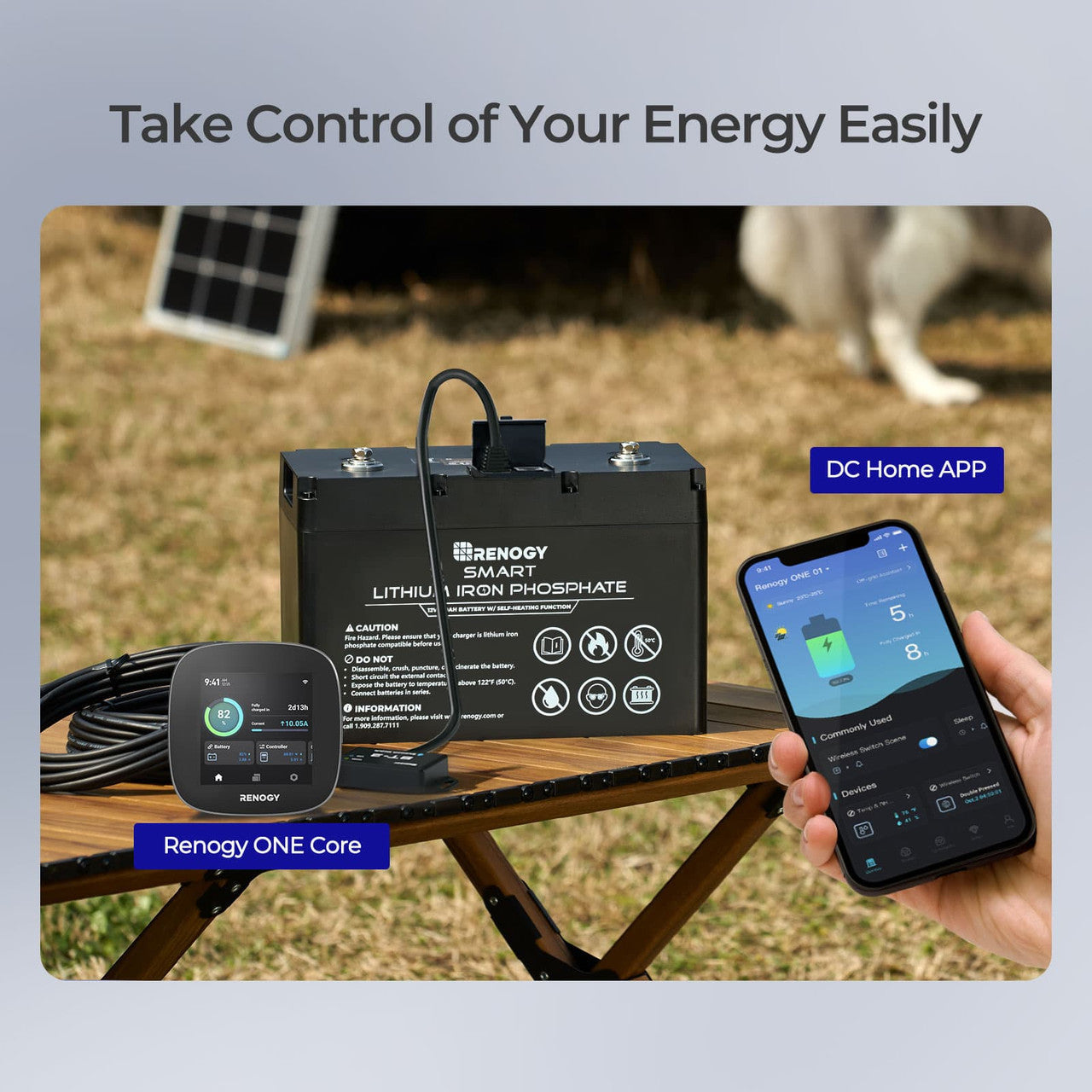 Renogy 12V 100Ah Smart Lithium Iron Phosphate Battery w/ Self-Heating Function & BT2 & Renogy ONE Core