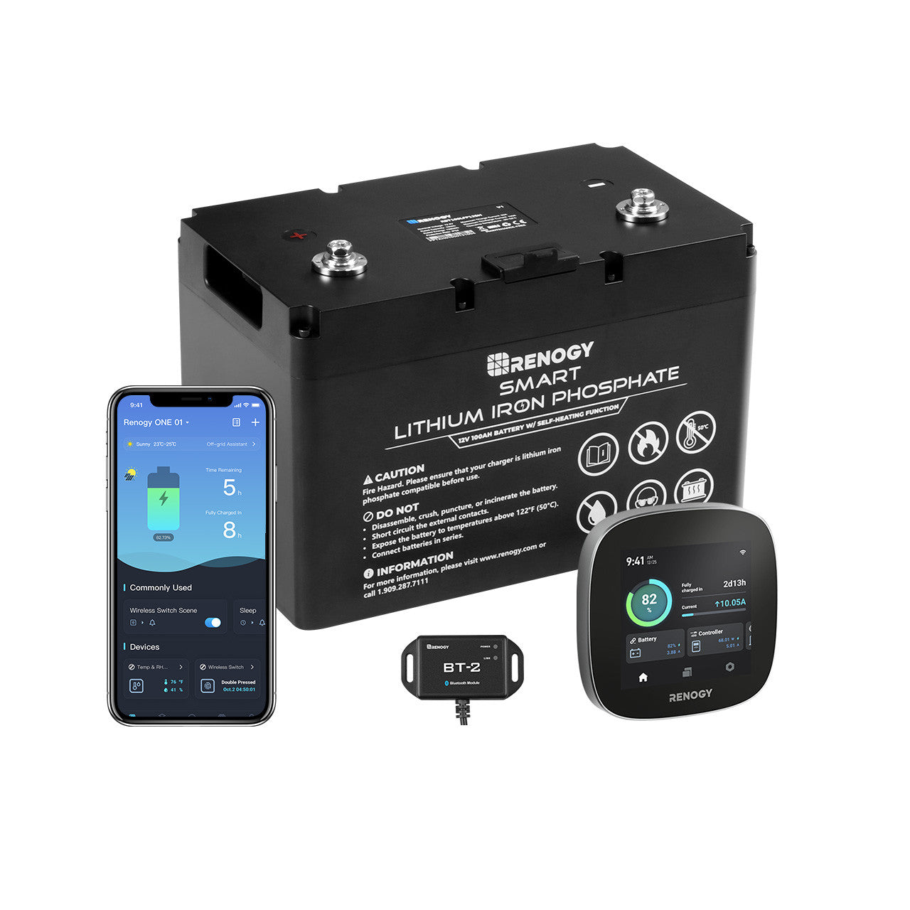 Renogy 12V 100Ah Smart Lithium Iron Phosphate Battery w/ Self-Heating Function & BT2 & Renogy ONE Core