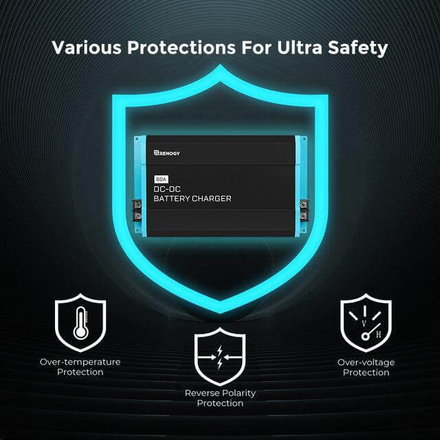 Renogy's DC-DC battery charger works seamlessly with traditional and smart alternators. The included D+ Ignition cable identifies generator starts, safeguarding the starting battery from over-discharge and protecting the generator. (Recommended: 18-16AWG copper cable. D+ Ignition Cable not included.)