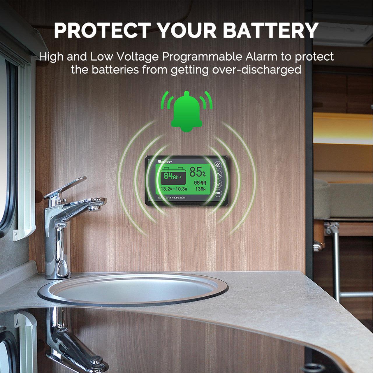 This monitor gives you high precision current detection and accurate battery state of charge. You can also set an alarm for high or low current voltage. When the alarm is activated, the backlight and voltage value will be shown on the screen to alert you on what to do when you reach the cut-off voltage.